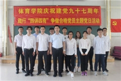 彩旗如画,展现光辉历程;岁月如歌,颂唱丰功伟绩。6月26日下午,济南大学体育学院举办庆祝建党九十七周年暨践行四讲四有争做合格党员主题党日活动。