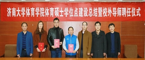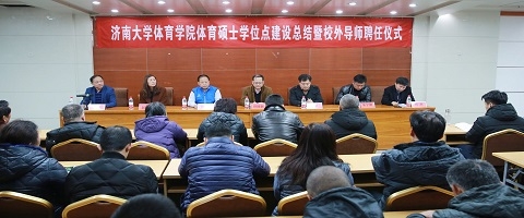 12月5日,济南大学体育学院体育硕士学位点建设总结暨校外导师聘任仪式于第五学术报告厅成功召开,山东省小球管理中心主任修振涛、济南第二十中学副校长朱宁刚,济南第二十中学体育教研组长赵永娟三位校外硕士生导师,济南大学研究生院、发展规划与学科建设处、体育学院负责同志和师生代表共120余人出席了大会。会议由体育学院党委书记杨杰主持。