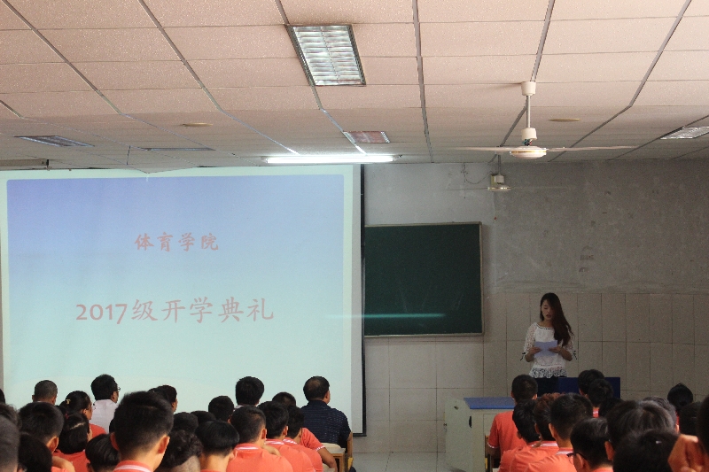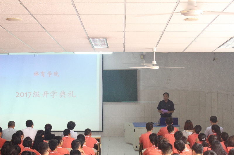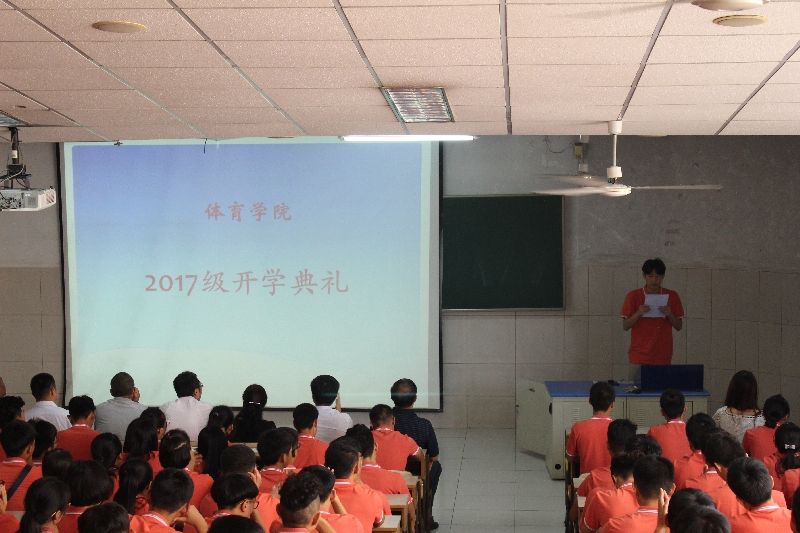 首先,由体育学院党委书记杨杰致辞,他代表体育学院所有师生对2017级新生的到来表达最诚挚的祝贺和最热烈的欢迎,并向新生介绍了介绍了学院的基本内容,希望新生尽快适应大学生活,勉励新生脚踏实地,珍惜时间,合理规划未来,做好职业规划,并祝愿新生们在大学四年能学有所成。接着,体育学院2015级优秀在校学生代表钟晓及2017级新生代表吴中豪分别在典礼上进行发言。老生代表回顾了自己在校两年的点点滴滴,结合自己的在校经历,鼓励新生努力学习,奋勇向前;新生代表则表示将始终保持昂扬向上的精神状态,身心投入大学新的学习生活中努力学习回报母校的培养。在新、老生代表发言后,由体育学院院长杨磊总结发言,他对2017级新同学提出了三点希望:一是转变角色、融入体院,二是学会选择、把握机会,三是学会感恩、勇于担当。并寄语全体新同学在学业新起点、新征程上扬帆起航,预祝同学们大学生活愉快成功。