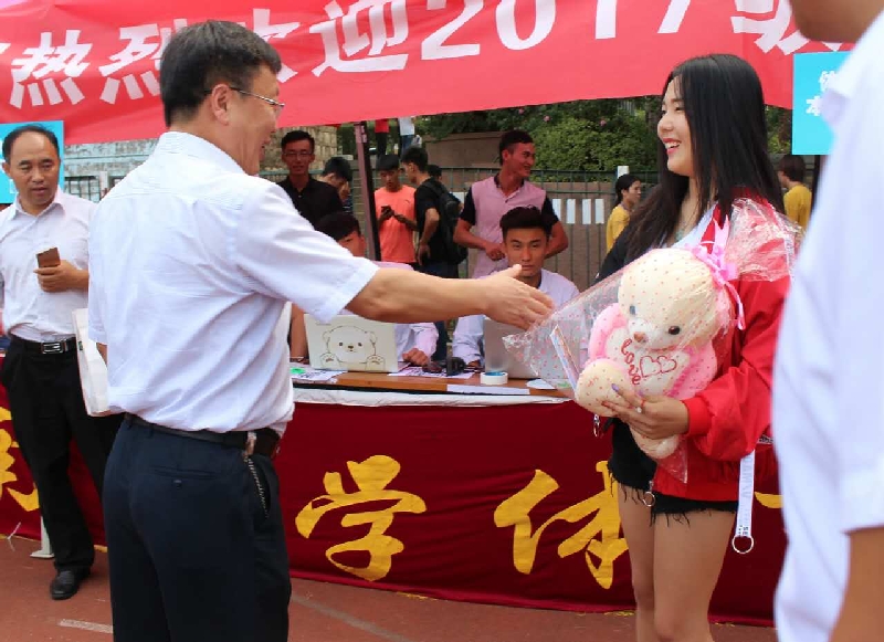 9月9日,万千学子汇聚济南大学。一个个朝气蓬勃,充满活力的身影点亮校园的每一个角落。今天,他们即将开启自己的大学之旅,脸上写满了期待。在体育学院的2017级新生报名登记处,体育学院大一新生朱心宇同学,从济南大学张士强校长、体育学院领导以及全体工作人员手中接过一份特别的礼物。