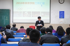 会议伊始,杨杰书记宣读了体育学院党委关于分会委员会换届工作委员候选人的批复、校工会关于体育学院召开二届一次会议的批复以及宣布通过大会监票人和计票人。接着,体育学院院长杨磊对学院2016年的工作做了全面系统的报告。报告中就学科建设快速发展,学科水平显著提升;专业建设水平提升,人才培养日益规范;科研实力不断增强;体育竞赛成绩突出等方面,全面总结了学院在过去的一年取得的成绩,同时也指出了学院发展过程中面临的机遇和挑战,明确了学院未来一年在党建与思想政治教育、教学、科研、竞赛、师资队伍建设、群体活动、场馆改善和学生管理等方面的具体工作目标。随后,体育学院工会分会主席路平做了本届分会工作报告,并对老师的支持表示真诚的感谢。然后,体育学院工会会员选举产生了第二届体育学院工会分会委员。最后,大会审议两个报告、发表意见以及宣布换届选举结果,并召开体育学院新一届分会委员会会议,选举分会主席及委员分工。