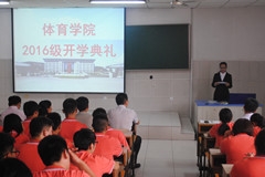 丹桂正飘香,筑梦当远航。9月12日,体育学院2016级新生开学典礼在第二教学楼105室隆重召开。体育学院党委书记杨杰,体育学院院长杨磊,体育学院副书记、副院长卢琦,副院长亓圣华,学办老师,2016级辅导员、班主任和助班及2016级全体新生参加了此次典礼。典礼由体育学院学办主任李涛主持。 在庄严的国歌声中,开学典礼正式拉开序幕。首先,由体育学院党委书记杨杰致辞,他代表体育学院所有师生对2016级新生的到来表达最诚挚的祝贺和最热烈的欢迎,并向新生介绍了学院的基本情况,希望新生尽快适应大学生活,勉励新生脚踏实地,珍惜时间,合理规划未来,做好职业规划,并祝愿新生们在大学四年能学有所成。接着,体育学院2013级优秀在校学生代表及2016级新生代表分别在典礼上进行发言。老生代表回顾了自己在校三年的点点滴滴,结合自己的在校经历,鼓励新生努力学习,奋勇向前;新生代表则表示将始终保持昂扬向上的精神状态,身心投入大学新的学习生活中努力学习回报母校的培养。随后,由2016级新生班主任代表发言讲话,她希望新生珍惜大学时光,勇于质疑,敢于创新,做正能量的人与事,能够在体院书写精彩生活,成就人生梦想。最后,由体育学院院长杨磊发言,他对2016级新同学提出了三点希望:一是转变角色、融入体院,二是学会选择、把握机会,三是学会感恩、勇于担当。并寄语全体新同学在学业新起点、新征程上扬帆起航,预祝同学们大学生活愉快成功。 至此,体育学院2016级新生开学典礼圆满落幕。据悉,体育学院2016级新生共220人,他们的到来必将为济南大学体育学院增添新的活力!(编辑:曾辉)