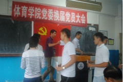 按照学校党委关于分党委换届工作的统一部署,9月27日体育学院在第四教学楼206室召开2016年党委换届党员大会。济南大学党委组织部组织员张铁柱,体育学院党委书记杨杰,院长杨磊,党委副书记、副院长卢琦,副院长亓圣华、刘正泉以及全体师生党员参加了大会。大会由体育学院党委书记杨杰主持。 首先杨杰书记向大会做上一届体育学院党委工作报告,讲述学院党建工作、教学科研工作、自身发展建设及对外合作交流等各方面取得的新成果。接着在杨杰书记主持下选出大会监票人、计票人。大会介绍了候选人基本情况,监票人当场检查票箱是否完好、工作人员分发选票,主持人宣读选票注意事项之后,全体与会党员采取无记名投票方式,差额选举出新一届委员会委员。选举大会严谨有序,公开公正。主持人宣读选举结果后,全场响起了热烈的掌声。 此次党员大会选举产生了由杨杰、杨磊、卢琦、亓圣华、刘正泉等5人组成的体育学院新一届委员会。 会后,体育学院新一届委员会委员主持召开全体会议,进行党委委员分工,凝心聚力,积极探索有效的工作切入点,为增强体育学院党委领导班子的活力与创新力奠定了坚实的基础。(编辑:邢禄建)