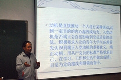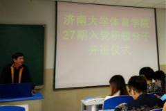 为加强党组织建设,进一步培养入党积极分子的思想认识。10月26日,体育学院第27期入党积极分子开班仪式暨党课第一讲在第一教学楼412室正式拉开帷幕。体育学院党委书记周明出席开班仪式并授课,第27期入党积极分子参加了此次开班仪式。 开班仪式上,周书记做了动员讲话,并对学员提出了要求和期望。周书记希望学员们通过学习政治理论,能够引导思考人生,端正入党动机。接着,周书记介绍了本次党课培训讲座目的及内容,还介绍了学生党建活动计划和入党积极分子党课培训的具体安排。 开班仪式结束后,周书记为入党积极分子讲授第一课——《在党旗下成长》。内容主要包括《共产主义宣言》的概述、党的性质、指导思想、党员的权利和义务等方面的基本知识。期间,周书记还与同学进行了互相交流,了解同学们对党的见解,近一步增强了同学们对党的整体认识。在一个多小时的专题讲课中,学员们受益匪浅,坚定了加入中国共产党的决心。 此次开班典礼及第一讲的成功召开,加深了入党积极分子对党组织的认识,增强了入党积极分子的思想,同时也标志着体育学院第27期入党积极分子党课培训工作正式开始,为日后党课培训的顺利进行奠定了基础。(编辑:邢禄建)