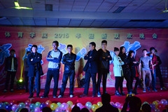 11月15日晚,体育学院2015年“筑体•育人 携梦翔”迎新联欢晚会于济南大学西校区星河体操馆圆满落幕。本次晚会由体育学院团委主办,学生会、自律会、网站三大学生组织共同承办,出席此次晚会的有体育学党委副书记、副院长张良红,办公室主任路平,学办主任、团委书记李春海,13、14级辅导员李谦,各年级体育学子欢聚一堂,共享视觉盛宴。 迎新晚会的节目形式多样,编排设计生动具体地诠释了“筑体•育人 携梦翔”的学院文化,晚会现场掌声连连,荧光棒挥舞不断。此外,观众还可通过关注济大体院助手,参与微信上墙、微信投票等即时通讯工具积极参与现场互动,引导网络文明,积极营造“勤奋、严谨、团结、创新”的校风,体现出了同舟共济、勇往直前的体育人精神风貌。 本次晚会首先由温馨热情的暖场视频调起了全场气氛,带着现场所有观众走进迎新联欢晚会。紧接着,歌舞、小品、手语、部长走秀、武术表演等精彩的节目依次进行,全场轰动,气氛很是活跃。火热的舞蹈串烧伴随绚丽的灯光点燃了观众的热情;精彩的双节棍、曳步舞、武术表演震撼了观众的眼球;社体三班的手语《相亲相爱的一家人》表演充分展现了体育学院团结友爱的精神风貌;自编、自导、自演的小品《大学》生动展现了大学生对友情、师生情的珍惜和感悟。在互动环节,高潮迭起,现场观众踊跃参与,其乐融融,礼仪也送上相应奖品。在优美动听的歌曲串烧的旋律中,画上了圆满的句号。 这是一个青春洋溢的舞台,这是一个激情荡漾的盛会,迎新联欢晚会的成功举办,充分展示了学生朝气蓬勃、积极向上的精神风貌,彰显了体院学子的凝聚力和战斗力,为体育学院谱写了更加华美的篇章。(编辑:李文佳)