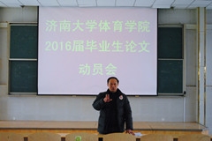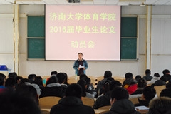 为提高体育学院本科生毕业论文的质量,进一步明确学校的人才培养目标。12月29日下午,济南大学体育学院在星博召开2016届本科毕业生论文动员会。体育学院院长杨磊、副院长亓圣华、毕业论文指导教师以及2016届毕业生参加了本次会议。