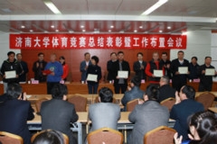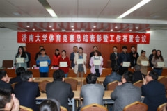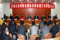 4月1日,济南大学体育竞赛总结表彰暨工作部署会议在第五会议室召开。济南大学校长程新,党委副书记车滨,学校办公室、学生工作处、教务处、校团委等部门负责同志和各学院分管副院长,全体教练员、运动员参加会议。体育学院院长杨磊主持会议。