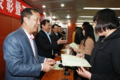 会上,与会领导为受到表彰的先进集体和个人颁发了奖牌和证书。经济学院、政治与公共管理学院被授予2014年度体育竞赛特殊贡献奖,苏文革等12位优秀教练员、化敏等18个学院82名同学受到表彰。体育学院训练部主任李保安介绍了2014年我校参加全国及山东省大学生体育竞赛的情况并代表受表彰教练员发言,文学院刘振同学代表受表彰的运动员发言。