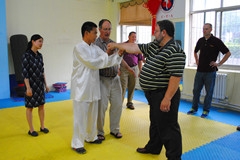 6月19日上午,美国北方州立大学孔子学院教育者访华团一行11人来校访问。受到体育学院院长杨磊、学校国际合作与交流处、体育学院相关负责人的热情接待。 体育学院杨院长代表学校向各位访华团成员的到来表示热烈欢迎,希望今后双方不断深化合作,推动两地文化教育交流。美国北方州立大学孔子学院教育者代表访华团对能来济南大学这所环境优美的校园学习深感荣幸和喜悦,对学院的热情接待表达了衷心的感谢,并赠送纪念品,希望以此次访问为契机,加强校际间体育文化方面的交流与合作。 学习交流期间,访华团观摩了体育学院的太极、武术以及体育表演,为中华文化的博大精深而赞叹不已。随后,体育学院赵老师为他们上了一堂生动有趣的武术太极拳教学课,讲解了武术的基本礼仪,武德等内容,然后,访华团学习了太极拳的基本动作,亲身学习体验传统武术,加深了对中华民族传统文化和民间艺术的了解。最后,访华团与接待领导合影留念。 此次是我校自美国北方州立大学孔子学院揭牌后,迎来的访华团成员。访华团成员是一群喜爱中国文化、对中华民间艺术着迷的教育者,来到济南体验到独特的中华文化,加强了体育文化的学习,对双方文化的互动交流及双方友谊的增进起到了重要作用。(编辑:邢禄建)
