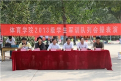 9月14日,体育学院新生军训队列会操表演在南院篮球场顺利举行,展现了体育学院学生良好的精神风貌。学院党委书记周明,院长杨磊,党委副书记、副院长张良红,副院长亓圣华,学办主任、团委书记李春海,学办朱磊磊老师以及2013级全体新生参加了会操表演。会操表演由李春海老师主持。