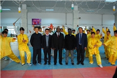 阿曼德·莫伊库瓦一行走进体育学院武术课的课堂,亲身感受中国武术的课堂教学。杨磊院长从武术的基本准备活动到武术课堂教学为阿曼德·莫伊库瓦一行客人进行了详细的介绍。课堂上,来宾对中华武术博大精深、以及刚柔并济的武术魅力感到惊讶与叹服,现场不时的想起来宾阵阵的掌声。在场的刚果(布)留学生也一起学习24式太极拳,让留学生们亲身感受到了中国武术文化的魅力。