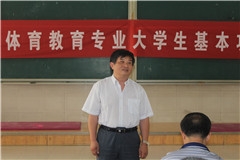会议伊始,刘新宇老师首先介绍了到场的主要领导以及各项目教练及专业课老师。随后,院长杨磊发表了讲话。他首先向同学们介绍了基本功测试开展的背景,并说明了参加基本功测试大赛对于同学们、任课教师以及济南大学均有着重要的意义。他告诫各位体育教育专业的学生:“你们是济南大学参加基本功大赛的优秀生,更肩负着济南大学体育专业的历史荣誉,希望你们发扬济南大学优良的体育传统,勇敢接受考验,圆满完成比赛任务。”此外,他还从学校以及学院为基本功测试大赛开展的各项准备工作说起,再次说明学院对于此次基本功测试大赛的重视力度。最后,他向同学们详细介绍了在基本功测试大赛准备期间将实行各项管理细则和要求,希望同学们严于律己,认真遵守。会议最后,周明书记勉励大家说:“同学们要认清当前的形式,做到思想和认识均要到位。”他还通过对学生参加基本功测试大赛诸多益处方面,告诉同学们抓住机遇,认认真真学习,踏踏实实训练,在锻炼自己的同时,掌握更多的专业知识。