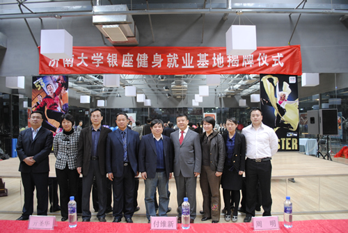 4月12日上午,济南大学体育学院毕业生就业基地、青年就业创业见习基地揭牌仪式在山东省银座健身发展有限公司举行。出席此次揭牌仪式的有学院党委书记周明、学院院长杨磊、学院党委副书记、副院长张良红、学院副院长亓圣华、学院学办主任、团委书记李春海、山东银座健身发展有限公司总经理付维新、市场营销部总监王仁磊、综合管理部总监赵霞等。