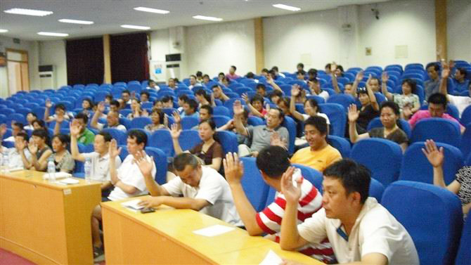 2011年7月13日上午体育学院教职工大会第一次会议在东校区报告厅圆满闭幕,会议由学院党委书记周明同志主持。