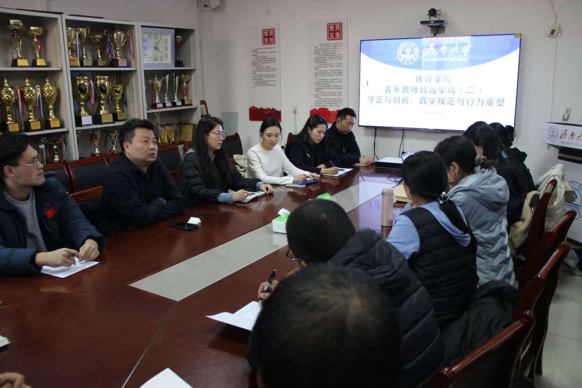为进一步规范教学行为,有效突破教学经验局限,全面提升整体教学质量,11月26日下午,体育学院举办“守正与创新:教学规范与行为重塑”专题讲座。体育学院书记孙成豪出席讲座,讲座由副院长车雯主持,学院骨干教师参加此次学习交流活动。