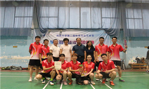 6月20日下午,由济南大学体育运动委员会主办,共青团济南大学委员会、济南大学体育学院承办的济南大学第二届体育文化艺术节学生羽毛球混合团体赛在济南大学西校区体育训练馆落下帷幕。济南大学党委宣传部、党委学生工作处、安全管理处,土木建筑学院、体育学院等相关负责人出席了颁奖仪式。