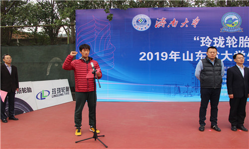 开幕式上,济南大学党委副书记、济南大学体育运动委员会主任张硕秋致欢迎辞,她代表济南大学全体师生向莅临赛会的领导、嘉宾,参赛运动员、教练员、裁判员表示欢迎。她介绍了学校情况和体育教学、科研及竞技比赛工作所取得的成绩。她表示学校将全力为比赛提供优质服务,创造良好环境,在各级领导的关心支持下,在全体参赛人员的共同努力下,将这次大赛办成体育的舞台、城市的盛会,成为弘扬和传播体育精神和全民健身理念的一张靓丽名片。山东省学校体育协会会长、山东大学体育学院党委书记、院长孙晋海孙晋海代表大会组委会向济南大学为本届比赛所作的准备工作表示感谢,并希望所有参赛单位能够共同努力,将山东省大学生网球锦标赛打造成我省高校最具活力的群众性体育赛事,并预祝大赛取得圆满成功。山东省小球运动联合会主席、山东省网球运动协会主席修振涛望大家在比赛中发挥良好的精神风貌和技术水平,获得优异比赛成绩,既要比出水平也要赛出风格,做到精神文明和运动成绩双丰收。山东省教育厅体育卫生与艺术教育处处长孙乐为宣布“玲珑轮胎杯”2019年山东省大学生网球锦标赛开幕。