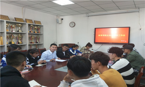 10月15日下午,体育学院在实验楼召开全体团支书工作会。出席此次会议的有体育学院团委书记李谦以及体育学院全体班级团支部书记。