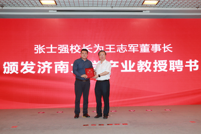 仪式上,张士强校长为王志军董事长颁发了济南大学产业教授聘书,王志军董事长为济南大学体育学院教师代表颁发新乐活健身俱乐部兼职教练证书,济南大学合作发展处处长卢旺与山东国筑体育发展有限公司常务副总裁于海龙代表双方签署全面合作协议。