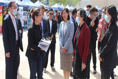 招聘会现场,张硕秋副书记一行针对就业问题同用人单位进行交流,深入了解各行业发展状况、人才需求情况及人才培养情况。张硕秋副书记对长期以来关心、关爱学生成长成才的单位表示感谢,希望通过建立长期合作机制,搭建用人单位和毕业生双向选择平台,为毕业生提供更多的就业岗位与实践机会。张硕秋副书记与十余家体育学院校友创办的体育产业相关企业进行了亲切交谈,她对校友回校选才表示高度赞赏,希望校友积极发挥带动示范作用,与学校建立更为深入密切的合作关系,带领体院学子共同为建设体育强国贡献力量。现场还设立了大学生征兵咨询宣传展位,为前来咨询的毕业生详细讲解了大学毕业生应征入伍优待优抚政策等。