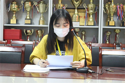 体教1907班赵明玥表示,作为新时代的青年,在学业上,我们要脚踏实地,理想远大,努力担当时代赋予的责任,用力书写无愧时代的荣光。让我们一起努力!为建设祖国贡献自己的一份力量。