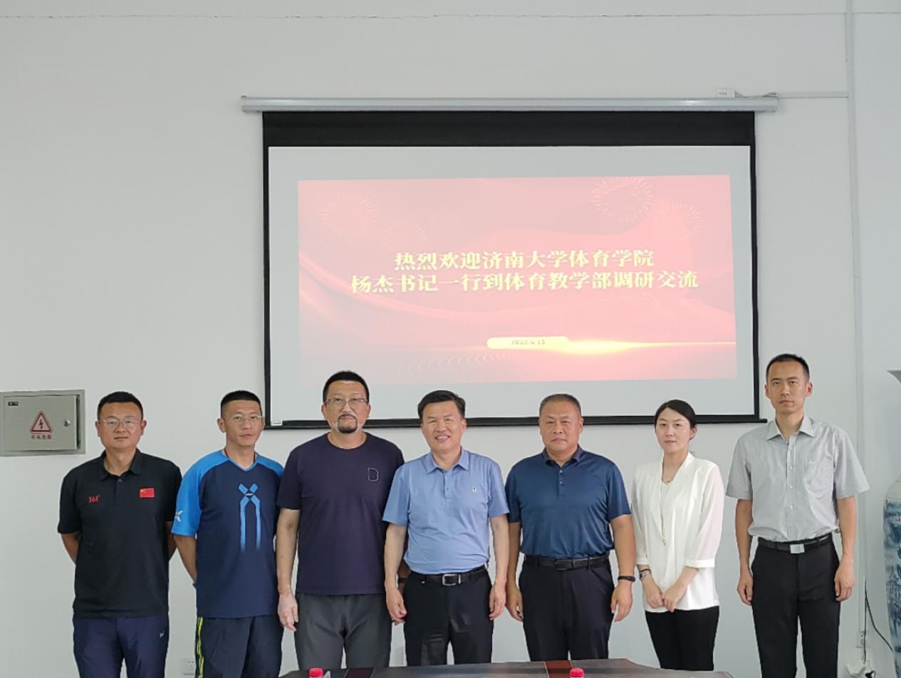 杨杰介绍了济南大学体育学院整体情况。他表示,山东大学在“育贤图强”体育理念下,体育课程建设与群众体育开展蓬勃,此次以主题教育为契机来访调研,希望可以加强双方交流联系,更好学习借鉴山东大学威海体育教学部在公共课教学、学生体质健康测试以及推动体育育人事业的经验做法。
