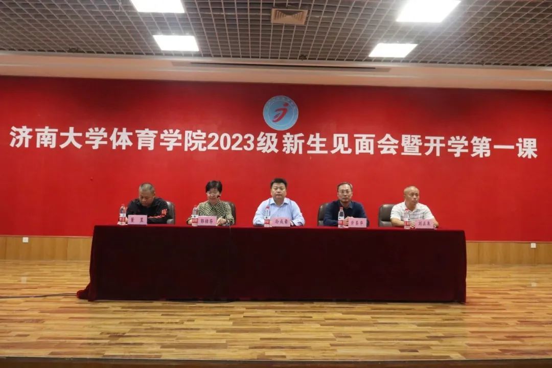 体育学院党委书记孙成豪代表学院对2023级全体新生的到来表示热烈欢迎和祝贺,孙成豪在讲话中表示今年恰逢济南大学建校75周年,2023级同学们的到来,让拥有75年历史的学校更加焕发生机与活力,同学们将深切感受到“弘毅、博学、求真、至善”的校训,亲身体验“崇德、睿智、创新、拼搏”的院风,参与创建“学科创特色,教学强水平,科研增实力,竞赛出成绩,群体铸品牌,创新求发展”的育人环境。孙成豪对新生们提出了三点希望。一是希望同学们坚定信念,大胆迈开前行脚步;二是希望同学们坚持学习,永远保持奋斗姿势;三是希望同学们坚守初心,勇敢迎接时代考验。
