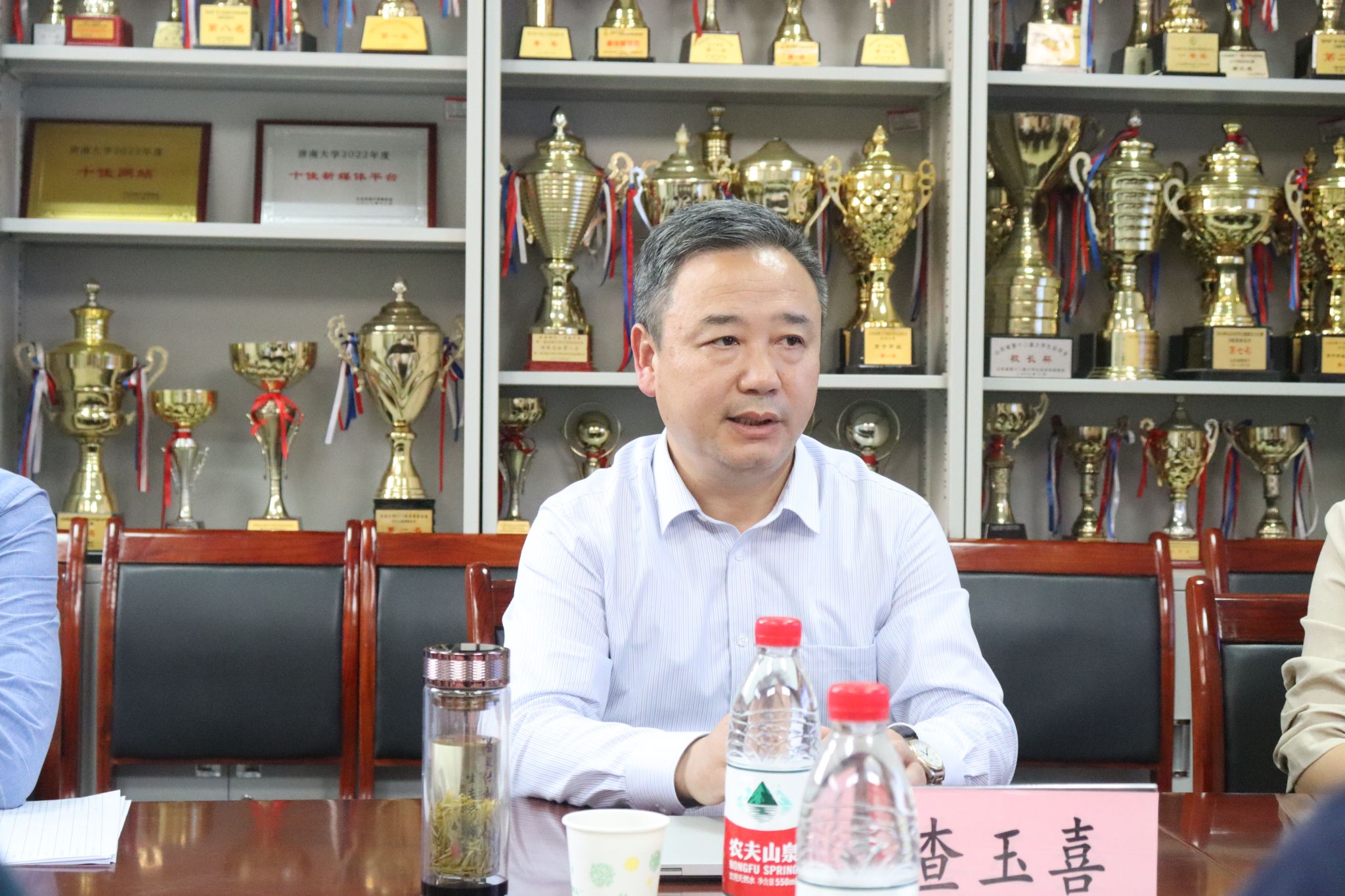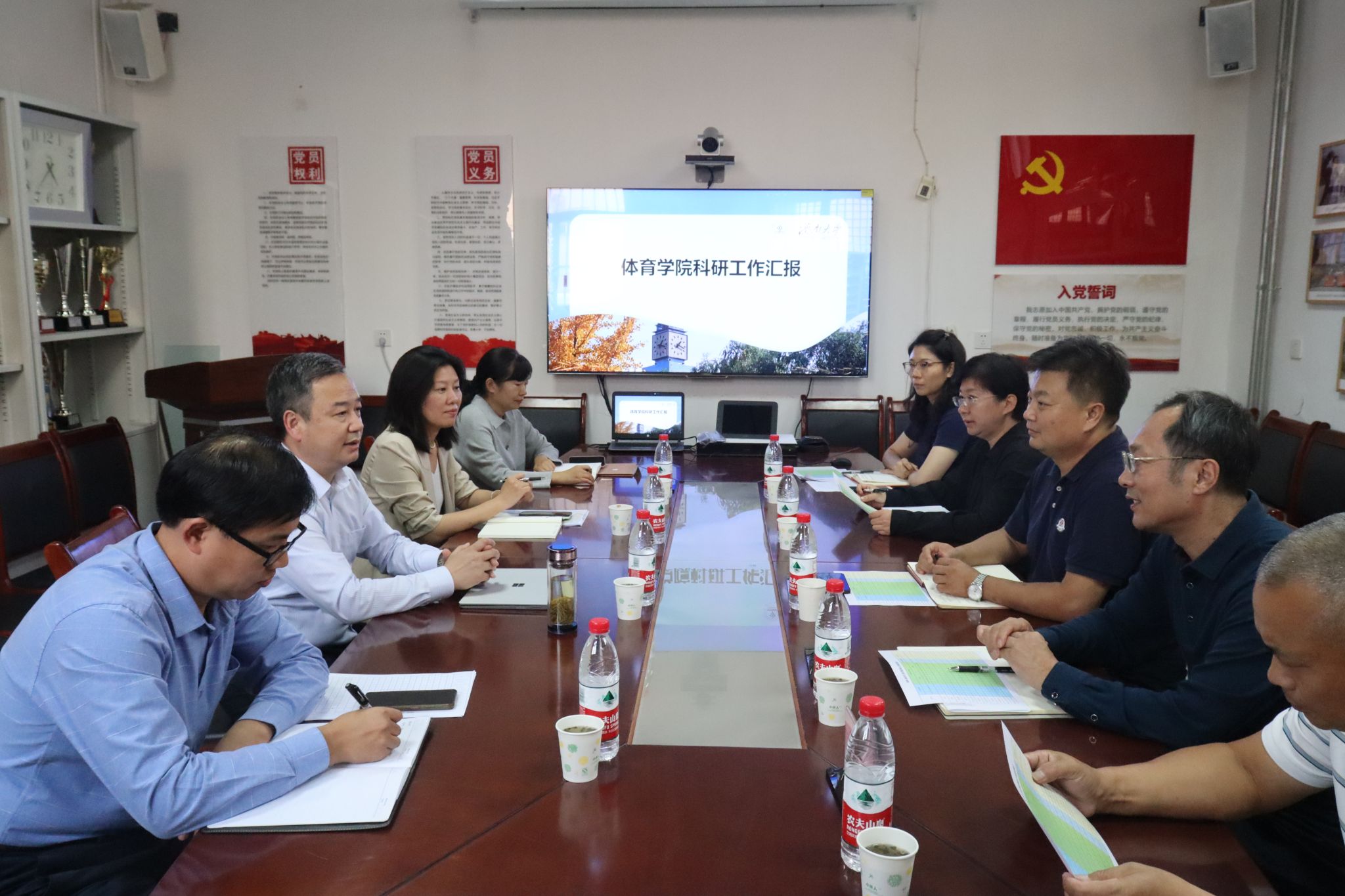 10月8日下午,学校党委副书记查玉喜,社科处副处长任慧颖、况明明等一行4人,就科研工作到体育学院进行调研座谈。体育学院领导班子成员出席会议并作汇报,座谈会由学院党委书记孙书豪主持。