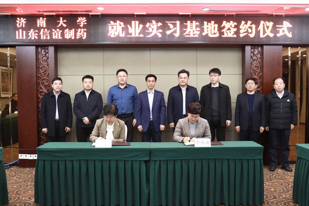 平原县副县长赵玉民和体育学院党委副书记、副院长郭桂芬作为代表签约。学生工作部(处)部(处)长卢旺与平原信谊制药相关负责人共同为“济南大学就业实习基地”揭牌;体育学院党委书记孙成豪与平原一中相关负责人共同为“济南大学青年就业创业见习基地”揭牌。李强一行先后到平原县“开发区二次创业”指挥部、山东信谊制药有限公司新园区、平原县第一中学、琵琶湾体育公园、全民健身中心等地进行调研,详细了解平原县经济社会发展和体育场地建设情况。