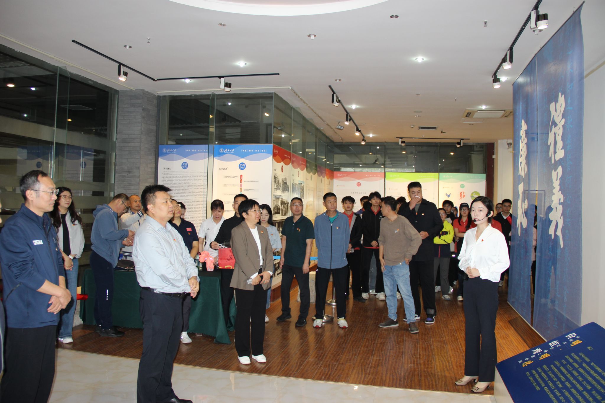 为推动党性修养与文化传承相融合,9月19日,体育学院以“党建带团建”为纽带,组织全体教工党员、学生党员及团员代表,前往舜道艺术馆开展“观‘明德’展悟传统精髓,强党性铸时代初心”主题党日活动,让师生在沉浸式体验中筑牢思想根基。