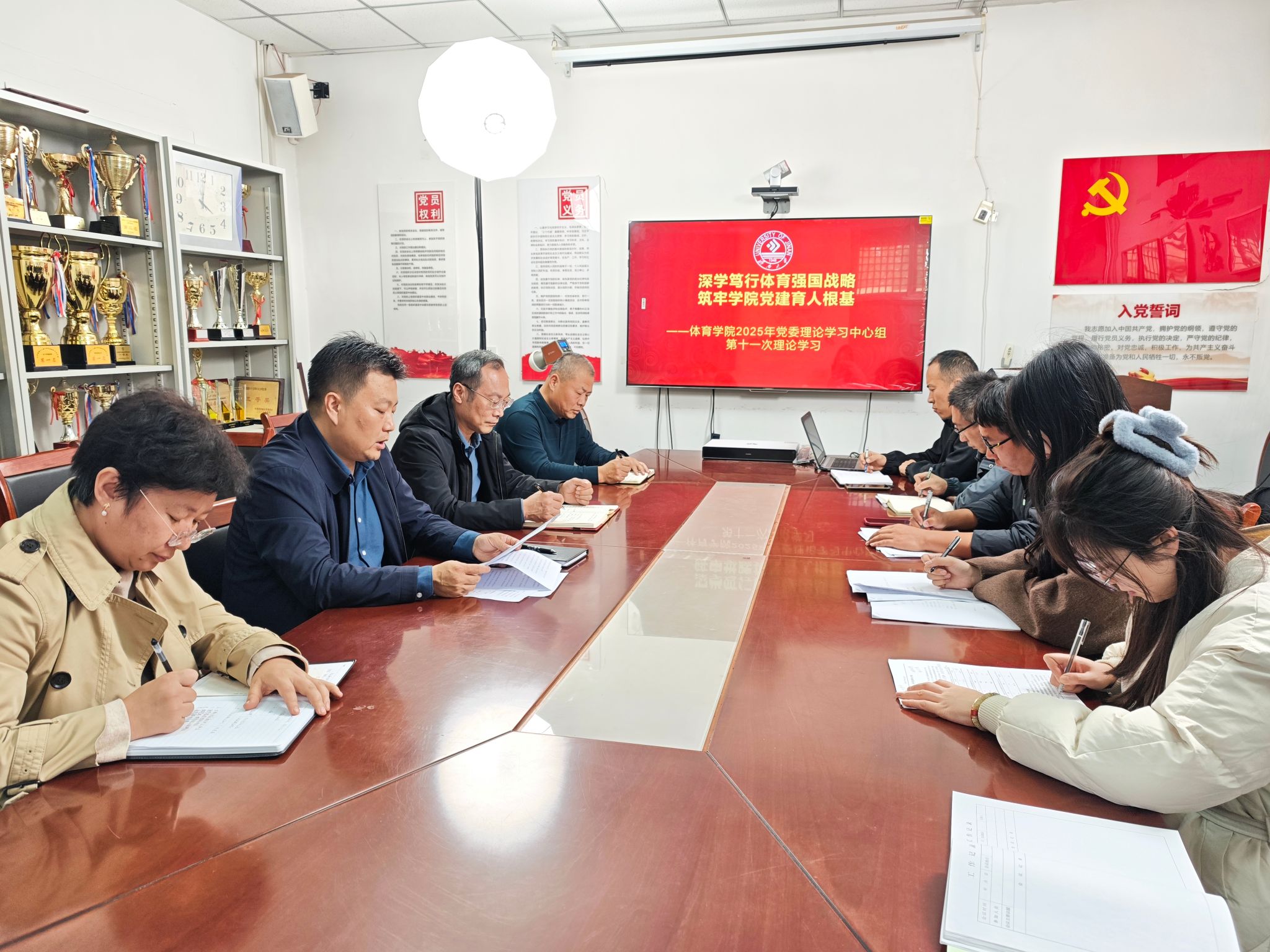2025年11月4日下午,济南大学体育学院党委理论学习中心组开展了以“深学笃行体育强国战略,筑牢学院党建育人根基”为主题的2025年第十一次学习活动,党委理论学习中心组成员、全体学生工作人员参加此次学习。