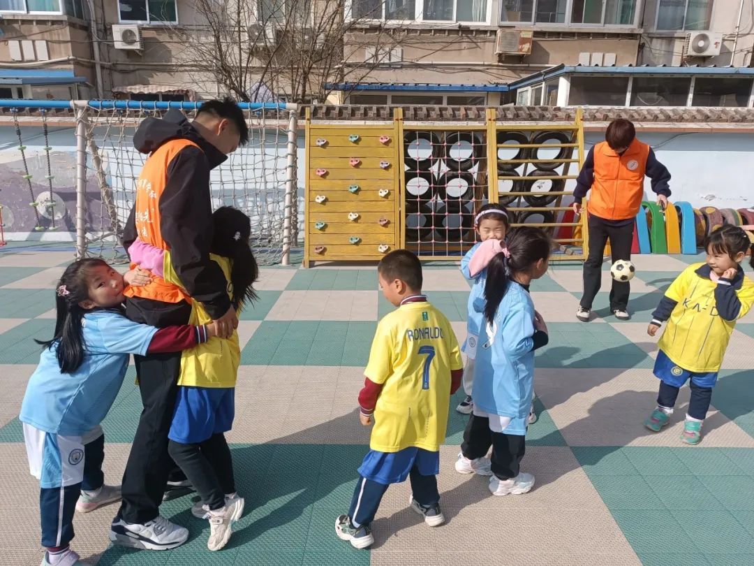 志愿服务活动从三个方面进行,首先,志愿者王一诺为幼儿园的小朋友们介绍了足球场地的各个部分,准确的讲解了足球运动的规则。其次,志愿者张亿豪、于振翼对小朋友们的疑问进行精准详细的解答。最后,在保证安全的前提下,志愿者们带领小朋友们开展了五人制的小组比赛,让小朋友们更深入的体会足球运动。足球运动可以很好的锻炼孩子们的身体,提高儿童的体能和协调性,培养孩子们团队合作精神,提高自信心,培养坚强的意志品质,丰富课外生活、提高交友与社交机会。志愿者们专业的教学,受到了幼儿园老师们与小朋友们的充分肯定与积极回应。