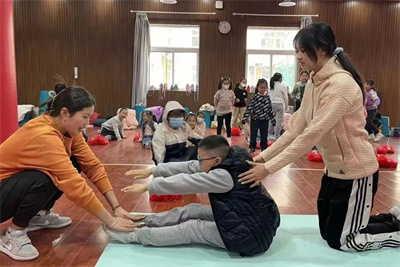 此次活动分为三个部分,基本理论讲解、技术动作演示以及团队合作能力培养。首先,戴静老师为小学生们讲解并演示了啦啦操运动的基本动作,并强调注意事项,然后,体育学院的志愿者们耐心为小学生们在学习过程中遇到的问题答疑解惑并纠正动作。最后,小学生们随着音乐,通过花球的组合动作,顺利完成红色啦啦操《闪闪的红星》八拍的练习。小学生们活力四射,积极向上的态度和团结合作,奋勇争先的的精神,在训练馆中形成了一道靓丽的风景线,同时,戴静老师和志愿者们的辛勤付出也获得了老师与同学们的喜爱与称赞。