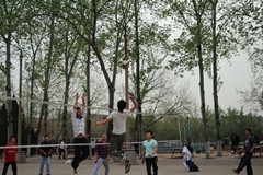 下午3:00,比赛还未开始,赛场上已是人头攒动,各个班级在领队的带领下,积极的进行垫球、传接球、战术等方面的训练,力求达到最佳的状态和水平来迎接比赛。随着体育学院学生担当裁判的一声哨响,拉开了比赛的帷幕,顿时,整个排球场的气氛紧张起来。比赛场上,选手们个个精神饱满,热情高涨,严肃认真地对待每一场比赛;赛场外,观众的呐喊声、助威声此起彼伏。经过一轮论激烈的角逐,最终体育一班以优异的成绩获得了此次比赛的冠军。最后本次排球比赛活动也落下了帷幕。