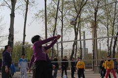 4月8日下午,2013年济南大学女子教职工排球赛在排球场激烈开赛。体育学院与自动化学院展开争夺。