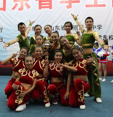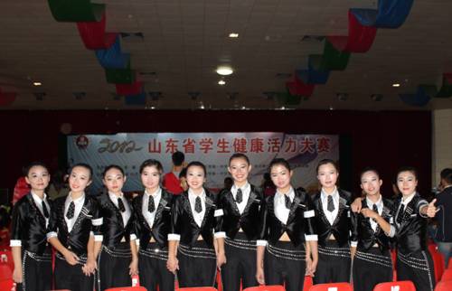由体育学院学生组成的我校健美操代表队,在2012山东省学生健康活力大赛中,在所参加的三个项目的比赛中战胜众多强队获得健身健美操—集体徒手赛冠军、健身健美操—集体器械赛第三名、啦啦队—舞蹈啦啦操第六名的优异成绩。董柔和刘丹丹同学获得“体育道德风尚奖”,苏文革、杨鹏获得“优秀指导教师奖”。
