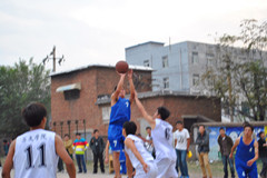 开幕式上,杨院长代表组委会对本次比赛的顺利举行表示热烈的祝贺!对各参赛队全体教练员、运动员、裁判员以及为本次比赛付出辛勤劳动的全体工作人员致以诚挚的问候!首个比赛日,有六场比赛。 其中,体育学院对战历文学院比赛甚是精彩,上半场比赛,体育学院球员迅速地抢球、传球、精准地投篮,双方场上队员对抗异常激烈。上半场结束时,两队比分紧咬,难分伯仲。下半场比赛,易地再战,比赛一开始,双方都严以待阵,体育学院代表队凭着灵活的进攻、严密的防守、果断的传球、精准的上篮与盖帽、完美的团队配合不断扩大比分,完全掌握了比赛的节奏,最终以77比61的比分赢得了比赛的胜利!
