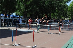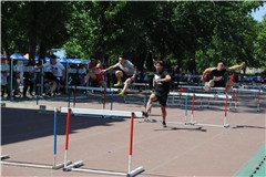 4月27日下午,体育学院乙组男子110米栏在田径场展开激烈的决赛角逐。