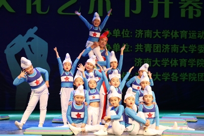 4月24日18:30,由济南大学体育运动委员会主办,共青团济南大学委员会和体育学院承办,各学院团委协办的济南大学活力健身操大赛暨济南大学首届体育文化艺术节开幕式在济南大学主校区大礼堂隆重举行。济南大学党委常委、副校长张硕秋,党委常委、副校长王志,济南大学体育运动委员会各职能部门的负责人、各学院党委副书记、团委书记、辅导员、学生代表及各参赛队学生出席了此次活动。开幕式由体育学院院长杨磊主持。 开幕式上,首先由体育学院党委书记杨杰致辞。他表示本届体育文化艺术节,在坚持“更快、更高、更强”体育竞赛理念的同时,更加注重参与的广泛性、活动的普及性、内容的趣味性、师生的互动性,项目设置丰富多彩、异彩纷呈,意在突出“育人为本”的教育理念,为每位同学提供参与的机会,最大程度地激发大家参与的兴趣和热情,培养同学们昂扬的精神风貌、积极的人生态度、坚强的意志品质和团结合作的集体主义精神。希望广大师生弘扬中华体育精神,顽强拼搏、勇攀高峰,赛出风格、赛出水平,夺取运动成绩和精神文明双丰收;希望组委会及全体工作人员精心组织,密切配合、扎实工作,努力把首届体育文化艺术节办得隆重热烈、精彩圆满。 然后,校团委书记孙菲菲宣读了《济南大学首届体育文化艺术节活动方案》,详细介绍了活动指导思想、主题、内容和组织开展。 随后,王志副校长在开模式上讲话。他指出:我校历来高度重视体育工作,并将其作为校园文化活动的重要组成部分,作为教育教学的重要环节纳入到人才培养过程当中。近年来,学校持续加大投入,不断完善体育基础设施建设,积极倡导师生投身体育运动,广大师生的健康意识明显增强,全民健身运动的氛围日渐浓厚,呈现出以“体育文化艺术节”、运动会为主线,以体育类社团为辅线的体育活动新局面。体育在济南大学已不仅仅是一种身体运动,更是一种生活方式、一种教育手段、一种精神载体,成为培养健康体魄、塑造健全人格、促进全面发展的有效途径,“体育+”的模式已成为学校一道亮丽风景线。希望广大师生以本届艺术节为契机,让“崇尚、热爱体育运动,拥有强健体魄、拥抱健康生活”的教育理念深植于每个人心中,并在积极快乐地“阳光体育运动”中,充分体验体育的价值与魅力,让精彩的人生与运动同步,与健康同行。他希望大家积极参与,将体育文化艺术节成为全体师生展现阳光、健康、向上精神风貌的精彩舞台,成为我校校园文化建设的特色品牌和“文化名片”。 在热烈的掌声中,张硕秋副校长、王志副校长为体育文化艺术节的会徽揭幕。随后,张硕秋副校长宣布济南大学首届体育文化艺术节开幕。 伴随着动感的音乐,济南大学活力健身操大赛如约拉开序幕。此次比赛以济南大学各学院为单位共有20支代表队334人参加比赛,其中参加《2017年全国校园健身操规定套路》有289人,参加《全国啦啦操规定套路一级花球啦啦操》的有109人。在健美操比赛中,各代表队在相同的舞蹈音乐中展现了不一样的精彩,连贯的衔接、默契的配合带动了全场气氛,赢得了阵阵喝彩。在啦啦操比赛中,各院代表队则大展风采,或力度十足,或轻盈跳跃,充分展现了大学生蓬勃的朝气和青春的热情,将气氛推向了一个又一个高潮。中场休息时,由济大瑜伽社团带来的瑜伽表演和体育学院社体专业带来的“八块腹肌”健身操表演为此次比赛增添了一丝别样的亮点,同时缓和了紧张的比赛气氛。 比赛中各学院代表队经过赛前的充分准备、刻苦训练以及赛时的力求完美、团结和谐的作风获得了评委和在场观众的一致好评。评委根据参赛选手的的动作标准度、服装、音乐等方面进行综合打分。经过激烈角逐,在啦啦操比赛中,医学与生命科学学院、材料科学与工程学院和生物科学与技术学院代表队获得一等奖,文学院、外国语学院、历史与文化产业学院和化学化工学院代表队获得二等奖,自动化与电气工程学院和美术学院代表队获得三等奖。此外,又颁发了大学生活力健身操大赛个人奖,分别为最佳活力奖、最佳表演奖、明星队员奖。至此,济南大学2017年学生健康活力健身操大赛圆满落下帷幕,也标志着济南大学首届体育文化艺术节正式拉开帷幕。 据悉,本届文化体育艺术节以“发展体育运动,追逐健康体魄,展示青春风采”为主题,活动持续时间从2017年3月至12月,含“追源溯流—学术文化类”“激情无限—体育竞技类”“炫彩青春—大众参与类”3大板块23个子活动,旨在通过多元的校园文化,为学生提供一个展示自我、放飞梦想的平台,提高学生综合素质,加强校园文化建设。(编辑:张健)