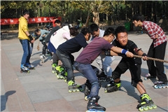 为庆祝建校65周年,倡导全民健生的健康理念。10月26日,济南大学翔空轮滑社在第八食堂前举办了济南大学第三届轮滑趣味运动会,广大轮滑爱好者参加了此次活动。