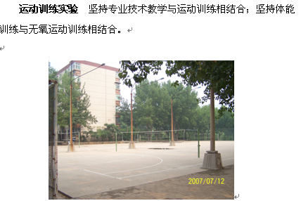 专业技术实验 坚持学生专业技术课堂录像与放像相结合;规范化专业技术资料放像与学生专业技术动作对比相结合;专业技术教学与学生体质健康测评相结合。