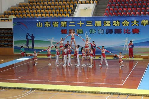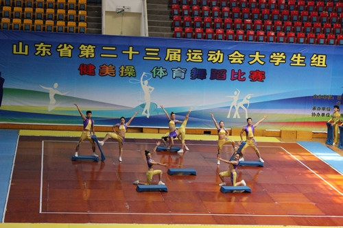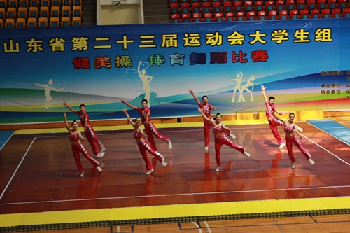 山东省第二十三届运动会大学组健美操比赛于2014年6月27日至6月29日在山东财经大学舜耕校区体育馆举行。我校派出了以体育学院书记周明任领队,苏文革、杨鹏等为教练员,以及16名运动员组成的健美操代表队参加了本届比赛。